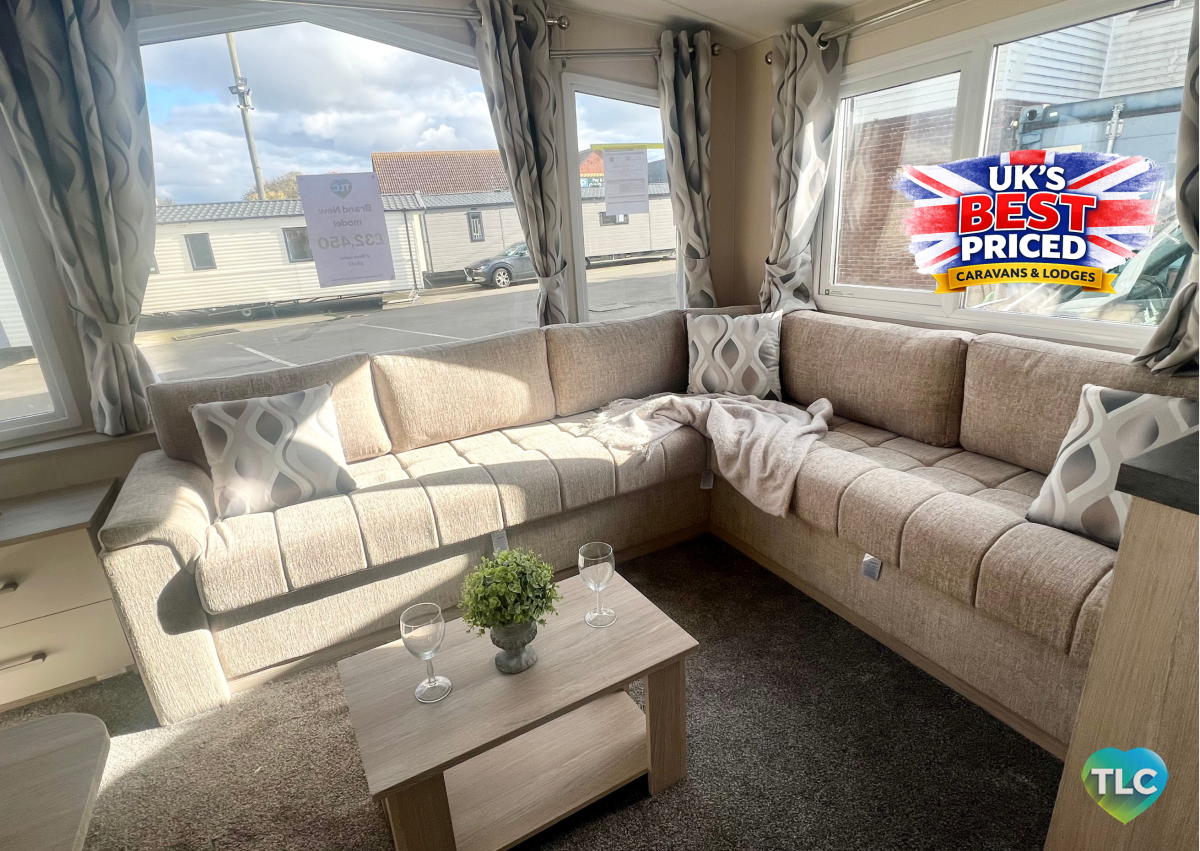 Step inside the 2026 Europa Cypress and you’ll feel it straight away: this isn’t “just” a static caravan, it’s a clever little retreat that thinks like a boutique bolthole. The cosy lounge wraps you in a social hug — wide, cushioned seating curves beneath a sweep of panoramic windows so every coffee, conversation and sunset feels front-row. Soft textured upholstery and contemporary scatter cushions give the room an inviting, lived-in luxe without being fussy; there’s still plenty of room to stretch out, sprawl, or stack the kids in a cuddle pile.