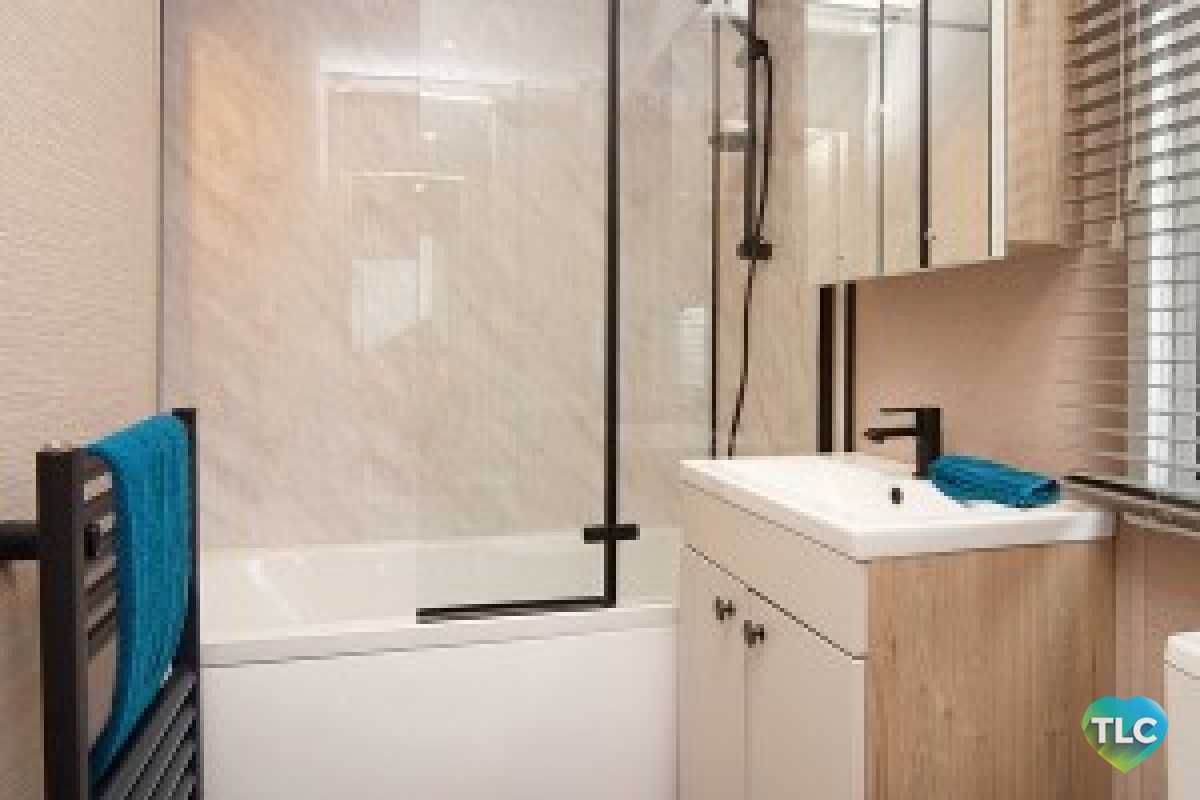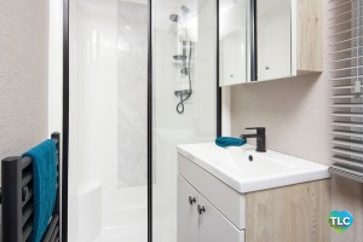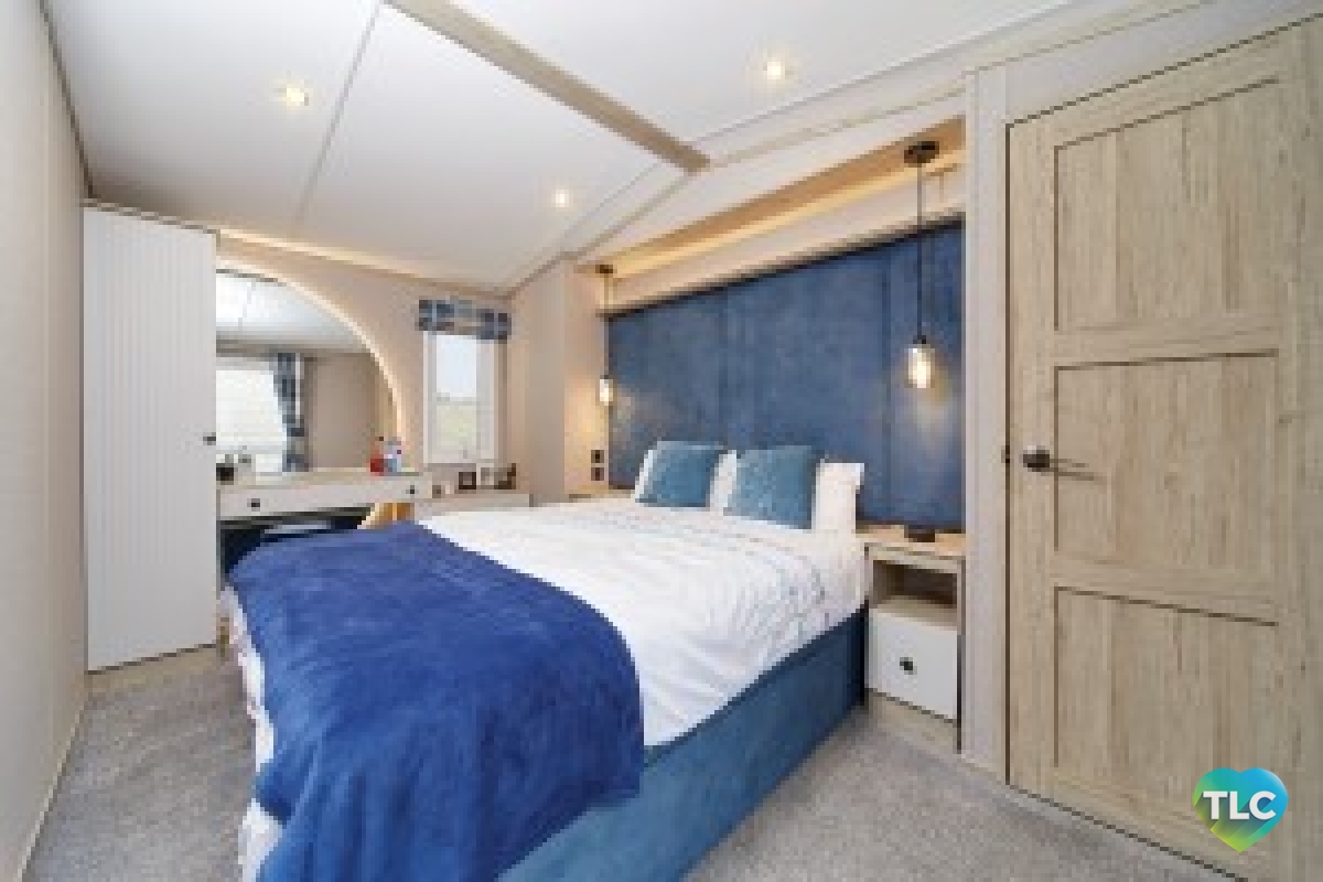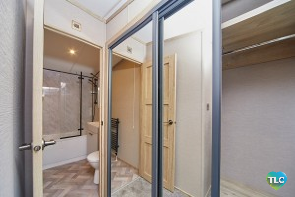 The master bedroom is designed to impress. A generous walk-in wardrobe provides excellent storage, while the striking extra-large LED illuminated mirror adds a real touch of glamour. The en-suite bathroom is equally luxurious, featuring both a full-size bath and a shower for the best of both worlds.