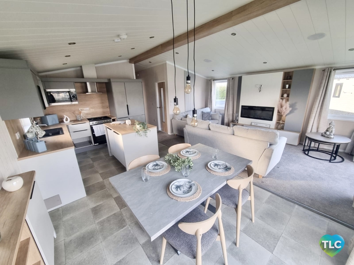 This stylish lodge enjoys a beautiful lake-view pitch, offering a peaceful outlook and a real sense of space. With private parking and plenty of room around the lodge, there’s fantastic potential to add a large wrap-around decking — perfect for morning coffees, evening drinks or simply sitting back and taking in the view.