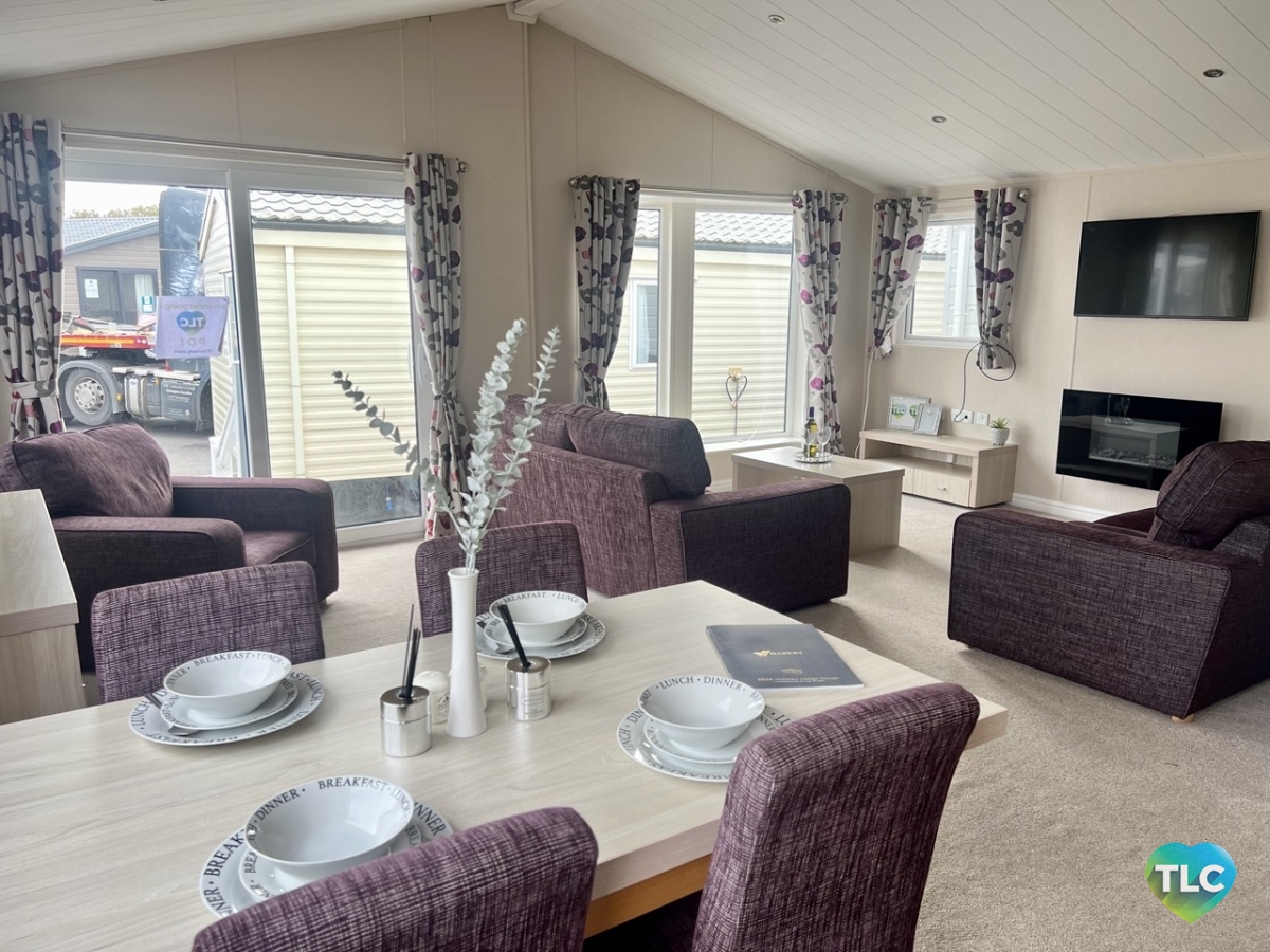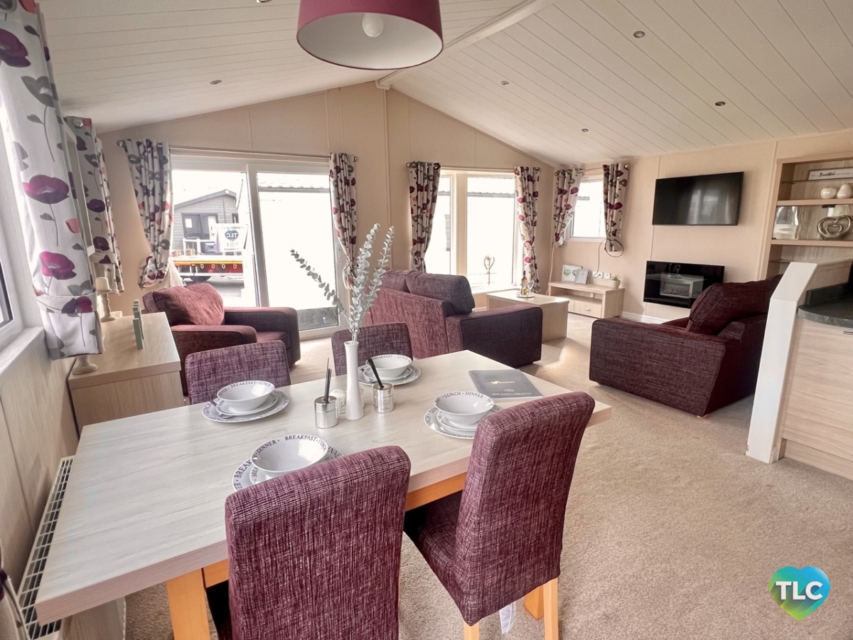 Step into the Boston and straight into lodge-living luxury. This 40x20, residential-spec haven (built for year-round comfort) pairs generous proportions with calm, contemporary styling. The open-plan lounge–diner is bathed in light from expansive windows, with plenty of space for entertaining or stretching out after a long day. A sleek domestic-style kitchen anchors the home—beautifully finished and fitted with fridge, freezer, integrated washing machine and dishwasher—so everything has its place and mealtimes feel effortless.