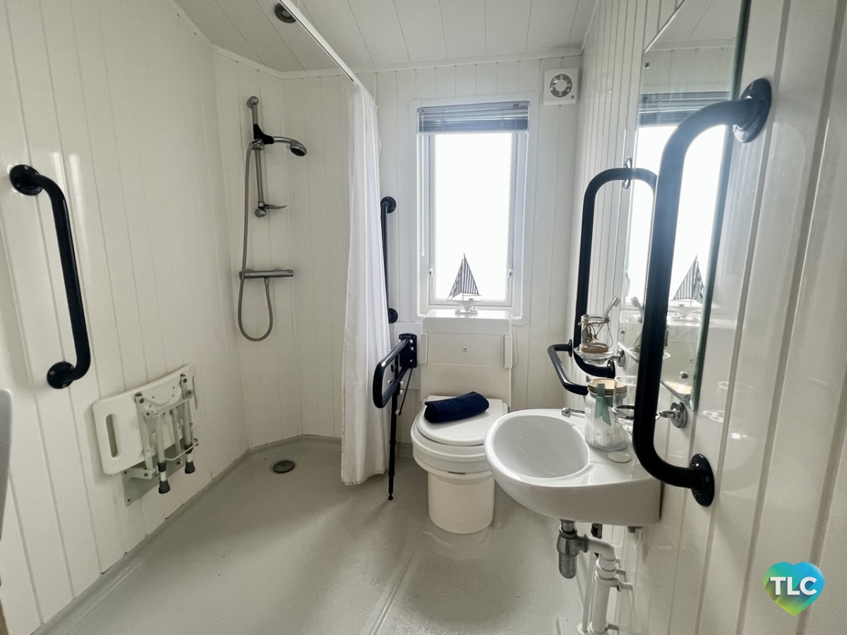 The main bathroom is a full wet room for wheelchair users, or those who like lots of space to lather up!