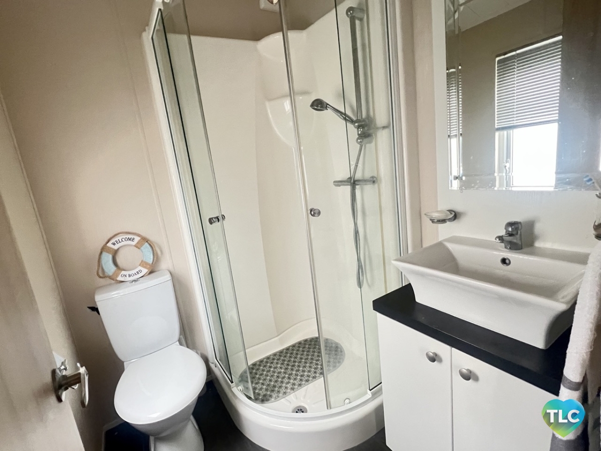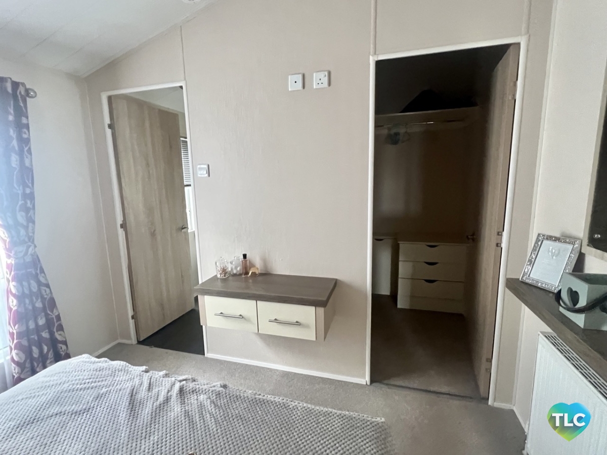 Both bedrooms are genuinely spacious, offering excellent storage and a serene vibe. The master offers a king size bed, wallk in wardrobe, under bed storage, room to breathe, and direct access to an ensuite shower room—ideal for easy, step-free showering and everyday practicality without compromising on style.