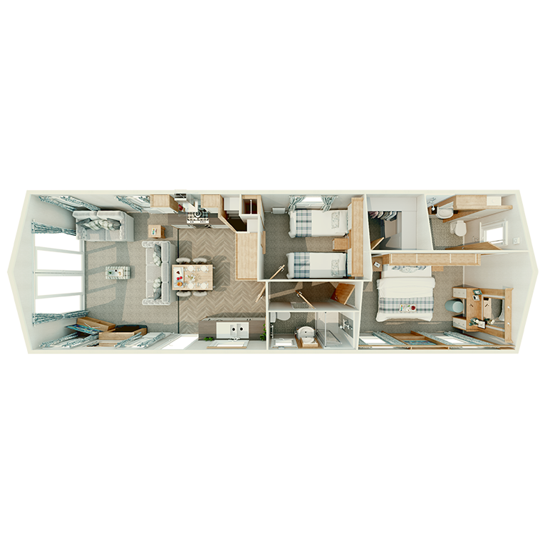 If it's space you're looking for, then the Dorchester is the one for you, as it is the largest single unit holiday home in our range at a huge 14.5'x43'.