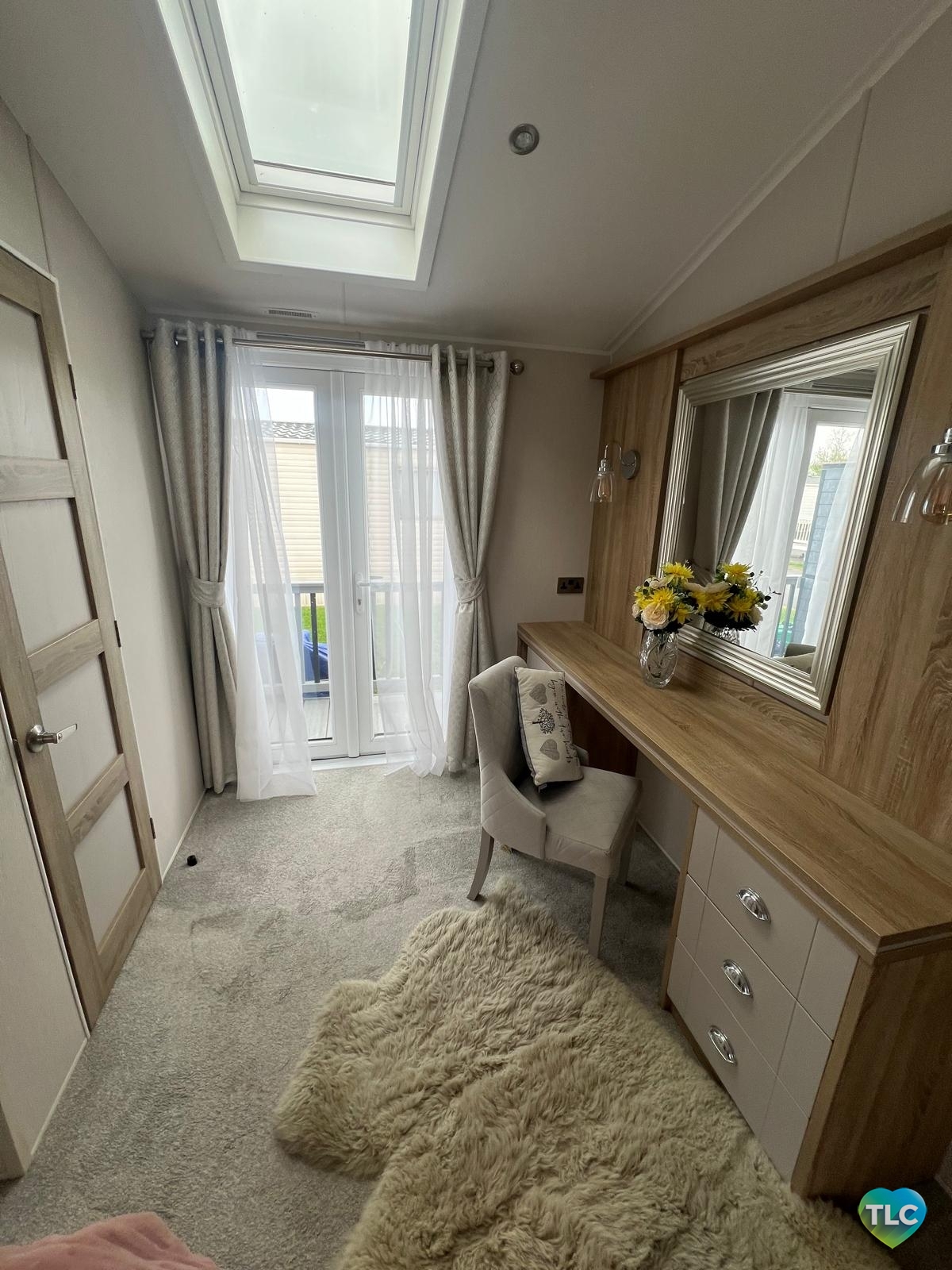 Absolutely stunning Willerby Vogue Classique holiday homeSited on Cherry Lea caravan park in Skegness on a lake side plotHas a wine cooler, American style fridge freezer and large shed